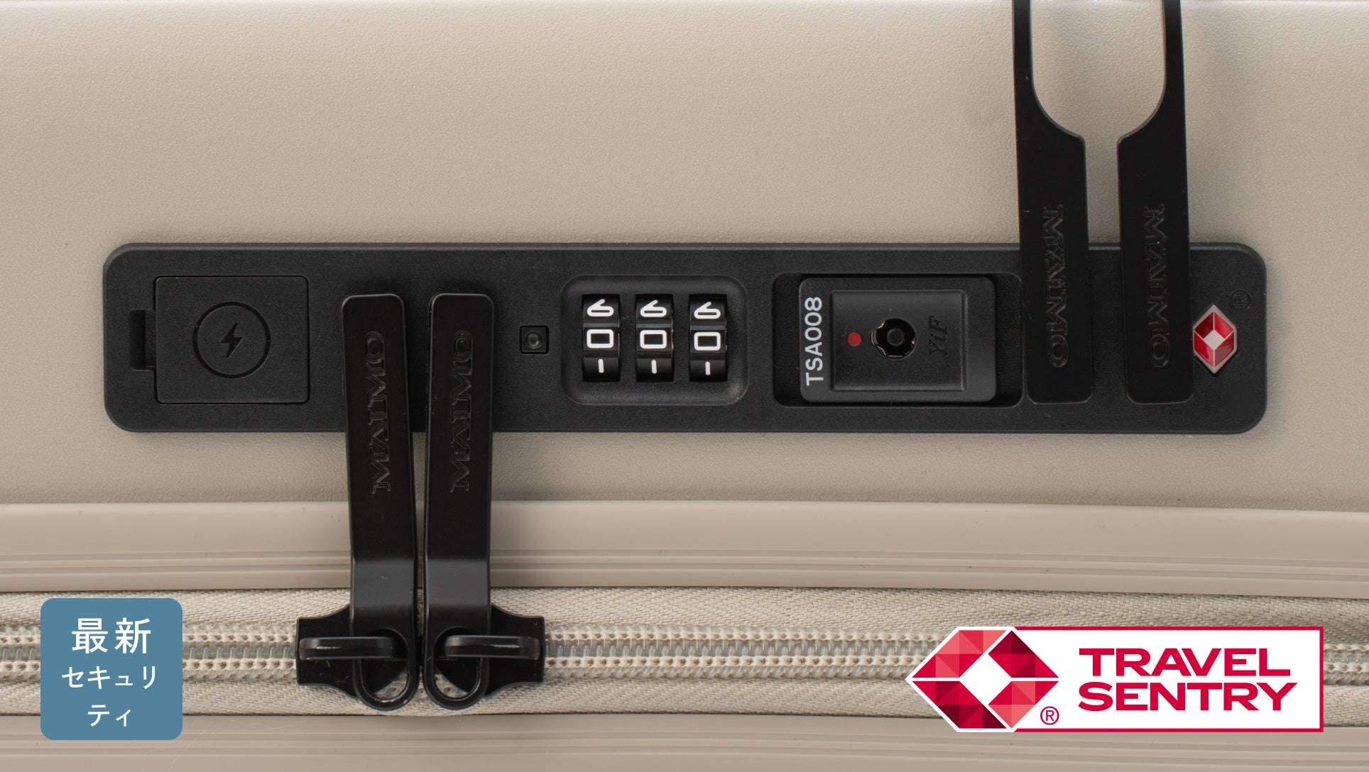 最新セキュリティーのTSA008モデルを採用し、フロントポケット・メインポケットどちらもロック可能。鍵の必要のないダイヤル暗証番号タイプで、検査官による再施錠漏れを防ぐオートロック機能もありダブルで安心です。