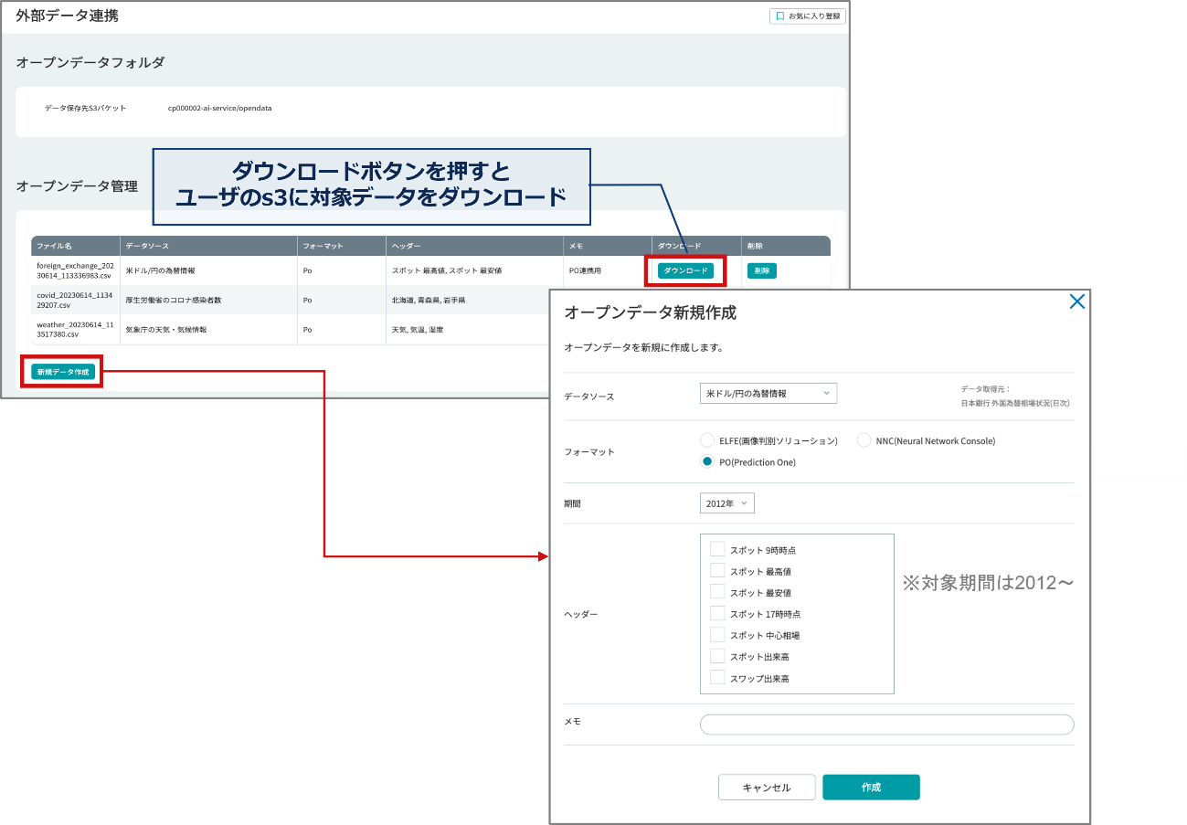 「Prediction One Biz」は、小売業や製造業の方には、販売予測や需要予測といった用途を中心にご利用いただいております。実際に予測分析を行うにあたり、自社保有のデータだけでは十分な予測精度がでないケースが多く、外部のオープンデータを利用したいという声が多くありました。しかし、一般のユーザーがオープンデータを入手するには、特殊な操作が必要になるケースがあります。