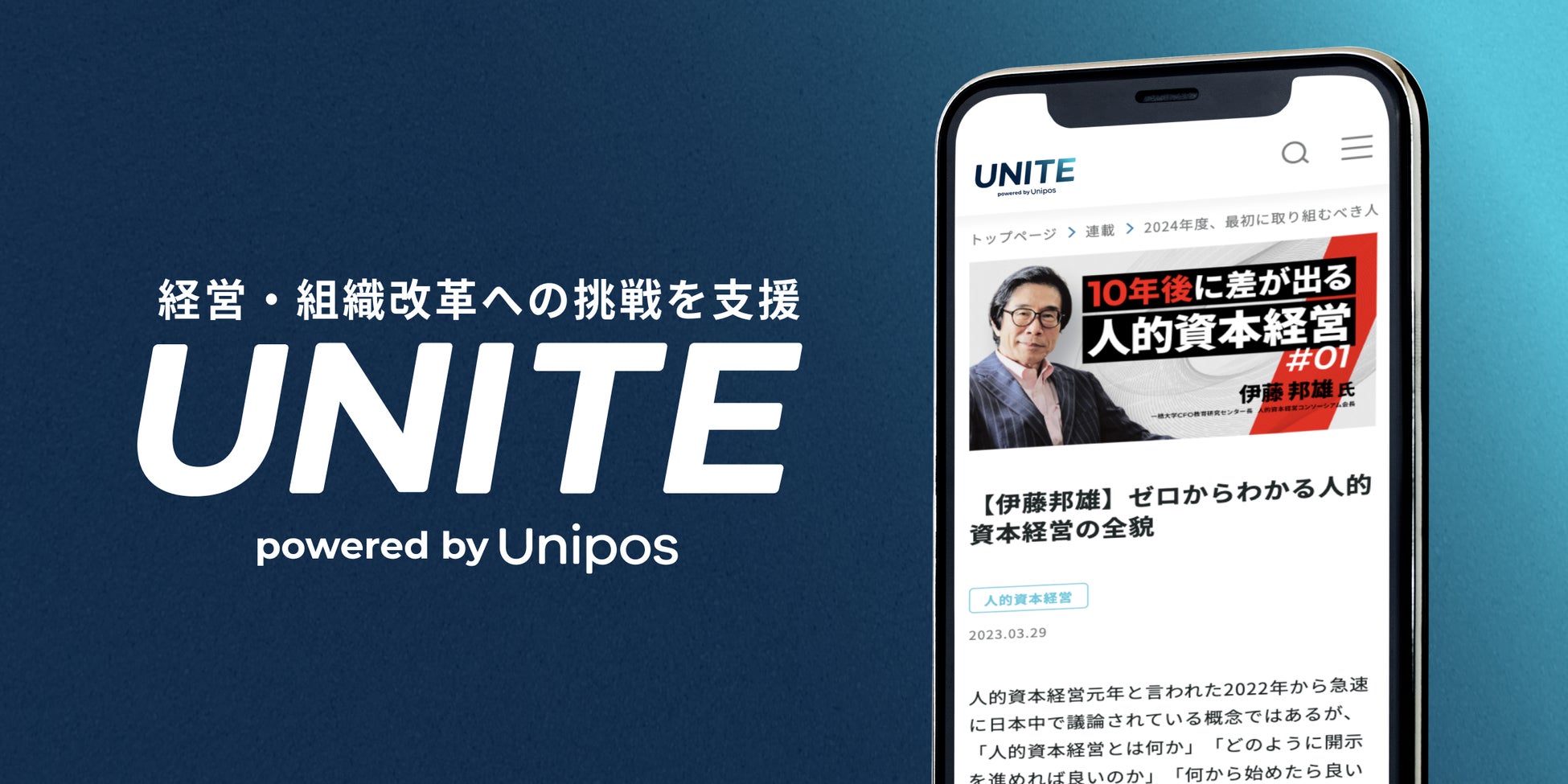 本メディアは、経営・組織の改革に取り組む全てのビジネスパーソンに向け、先進的な情報をお届けします。Uniposを既に導入いただいているお客様も、ご検討いただく以前の方々も、組織改革に行き詰まりを感じた際、UNITEを通して学びを深めていただけると確信しています。