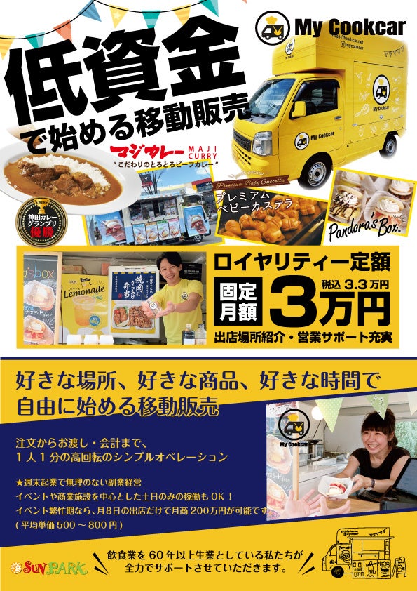 また、弊社サンパークでは、現在既にキッチンカーをお持ちの方でも「加盟(ライセンス)契約」することができ、出店紹介はもちろん、出店場所にあった商品マーケティングのノウハウを学んでいただけます。