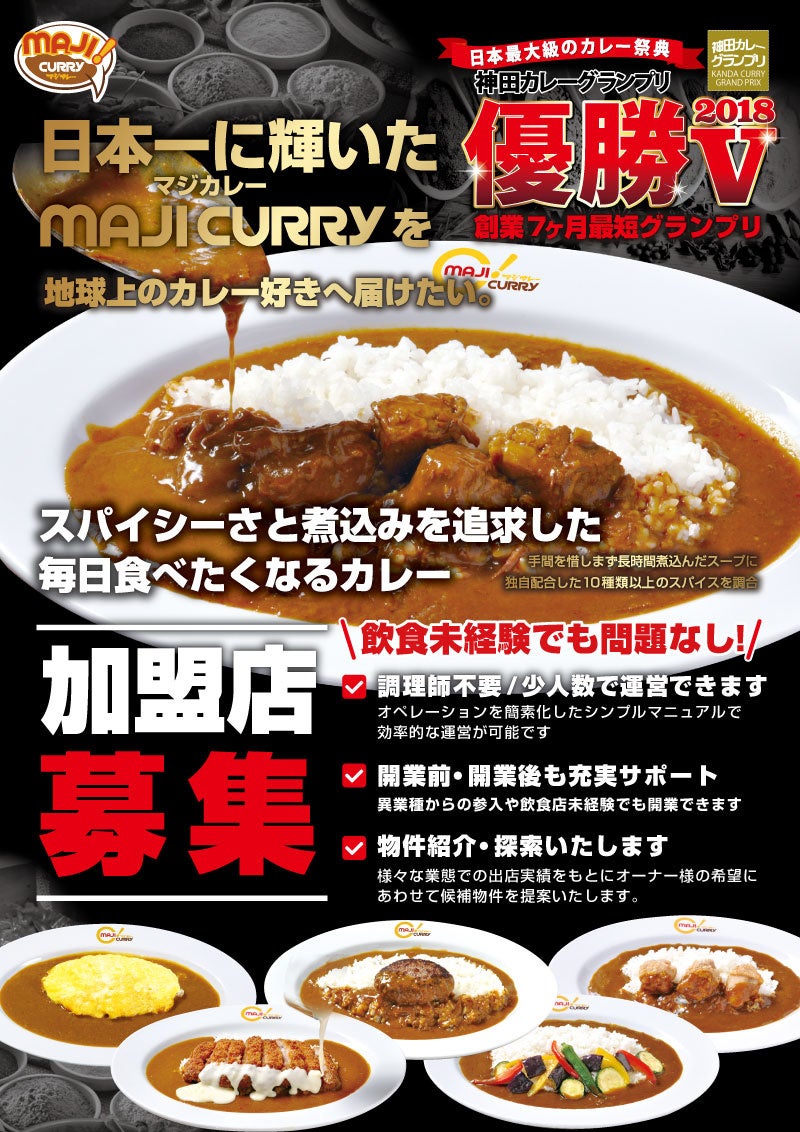 カレーの聖地”東京神田”にて毎年行われる「神田カレーグランプリ」において、創業7カ月にして、来場の皆さまからのトップ投票数で優勝に選ばれた伝説のカレー店「マジカレー」は、人気も高く、海外でもすでに続々展開中。