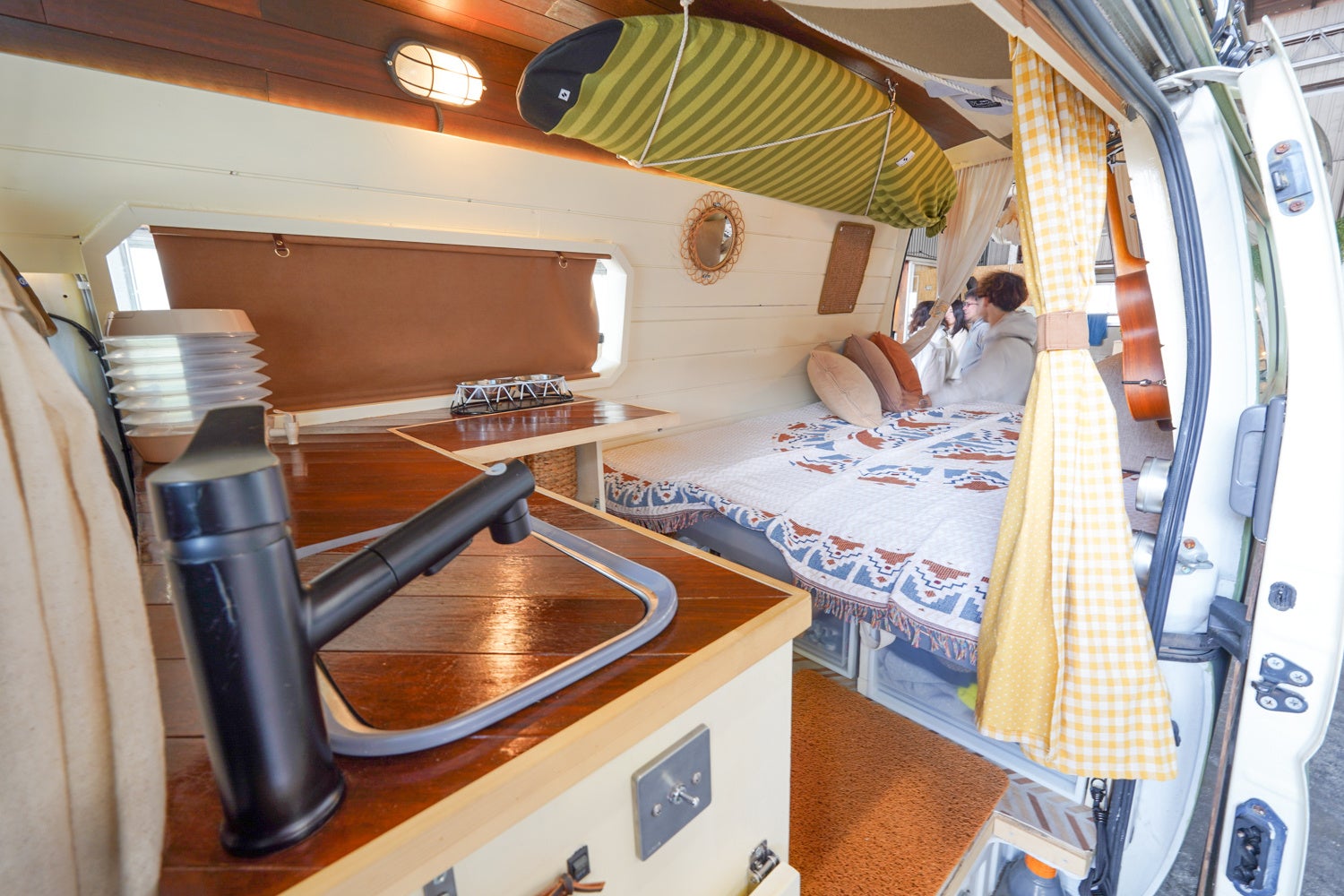 「ちゃんじろー夫婦」は日産キャラバンE25をキャンピングカー仕様に改造するため、電動のこぎりのジグソーや丸のこ、電装系統の配線作業用の電工ペンチなど、日常の利用頻度が限定的な工具を「Mobi Lab.」でレンタル使用し、天井や壁を木材・板で張り、シンク(流し)、ベッド、キャリアの設置、265ワットのソーラーパネル含む電装系統の装備、ホイール塗装するなど、車両の完成予定を約2週間短縮、製作費用も約60万円と当初の予定よりも30万円以上削減し、今後 住み処として利用する“動く家”キャンピングカーを完成させました。