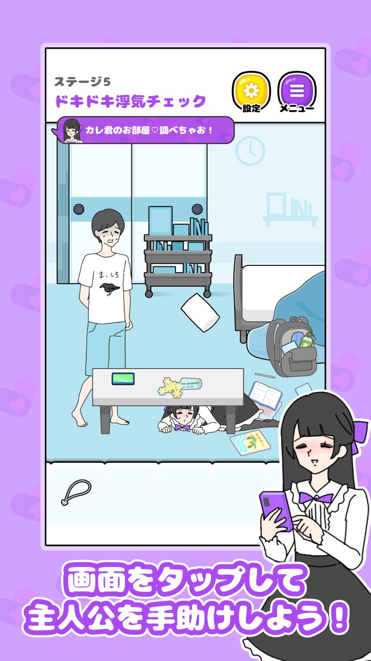 『メンヘラカノジョ』は、「ストーカー?いいえ、ただシャイなだけ!」なカノジョの恋を応援する人気のゆる脱出ゲーム『ストーカーカノジョ』のシリーズ作品です。ぶっとんで愛情深いカノジョの恋愛を、ぜひサポートしてあげてください。