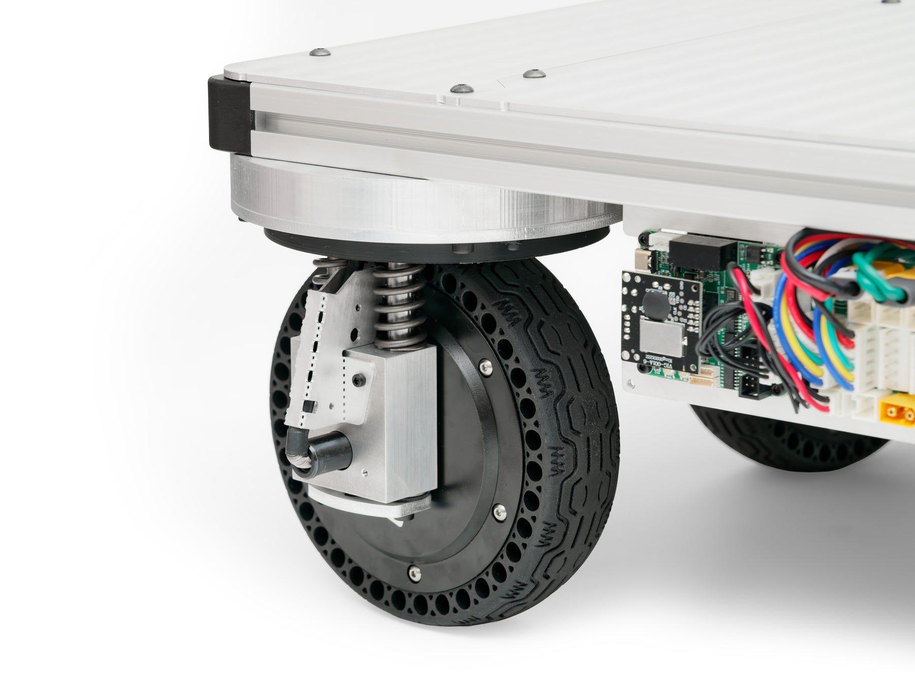 すべての車輪にステアリングを搭載し、自由度の高い制御が可能