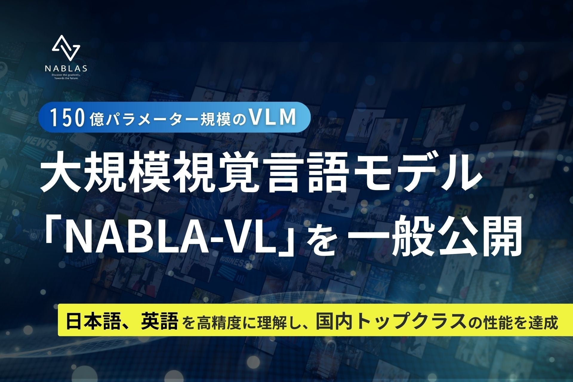 AI総合研究所として活動するNABLAS株式会社 (本社 : 東京都文京区本郷、 代表取締役 所長 : 中山 浩太郎、 以下「当社」)は、自社で開発した150億パラメーター規模の大規模視覚言語モデル(Vision-Language Model, VLM)「NABLA-VL」を公開したことをお知らせします。