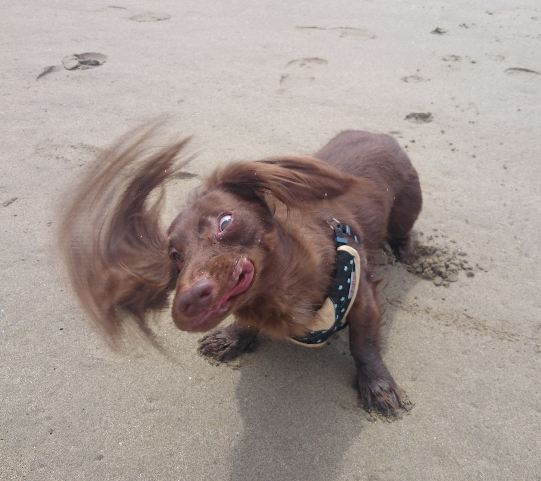 友人のペット、海デビュー。とてもはしゃいでいて、うまく撮れませんでした😕ブレたけどいい思い出です(*ˊᵕˋ*)♬.*゚