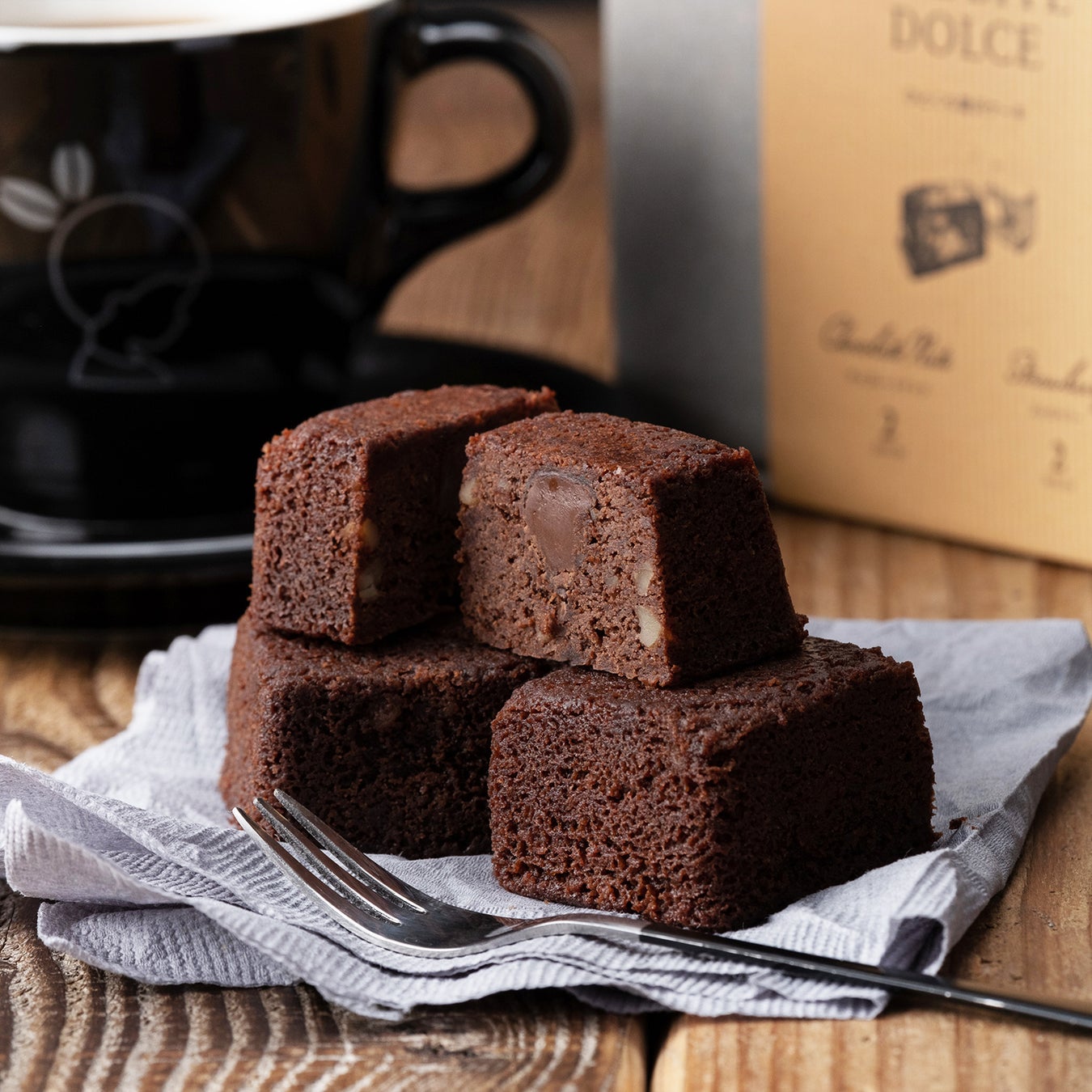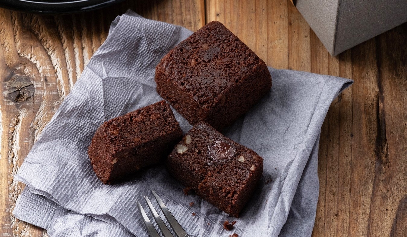 しっとりと濃厚なチョコレート生地に、ゴロゴロとした食感も楽しめる香ばしいクルミ入り。