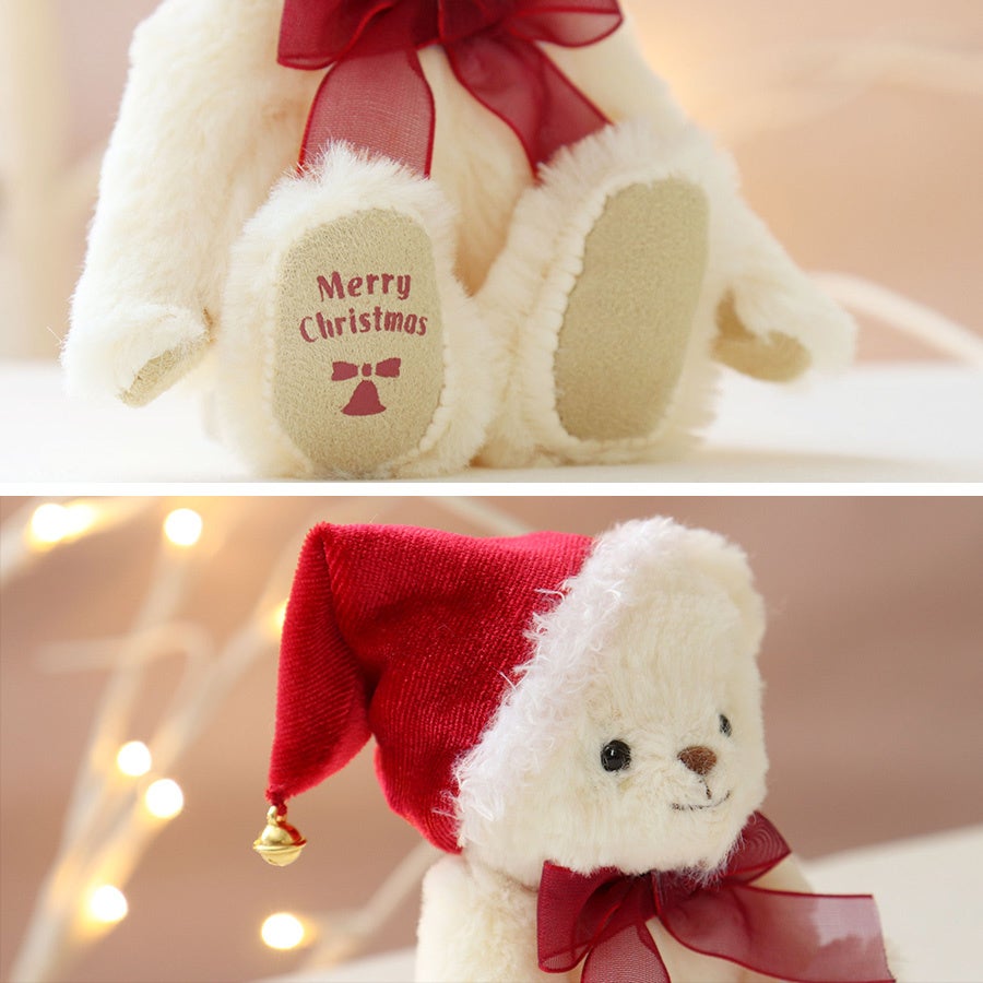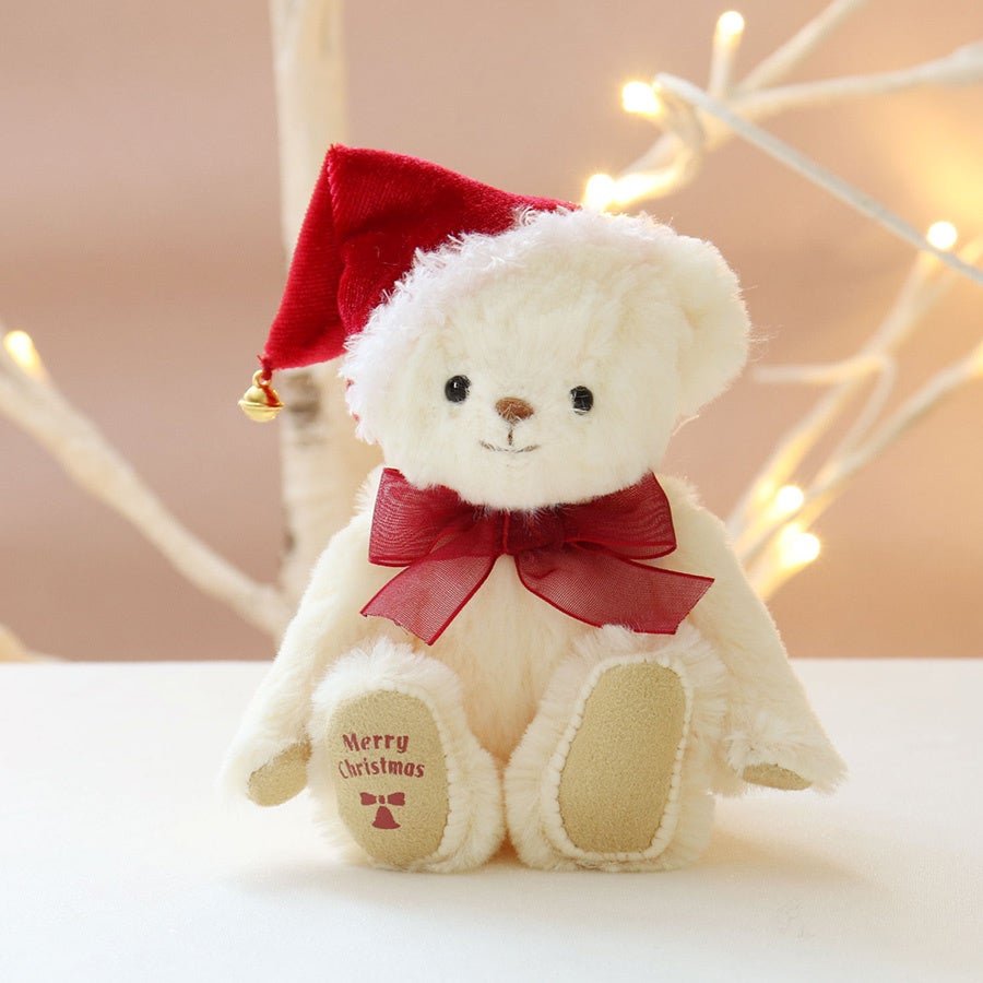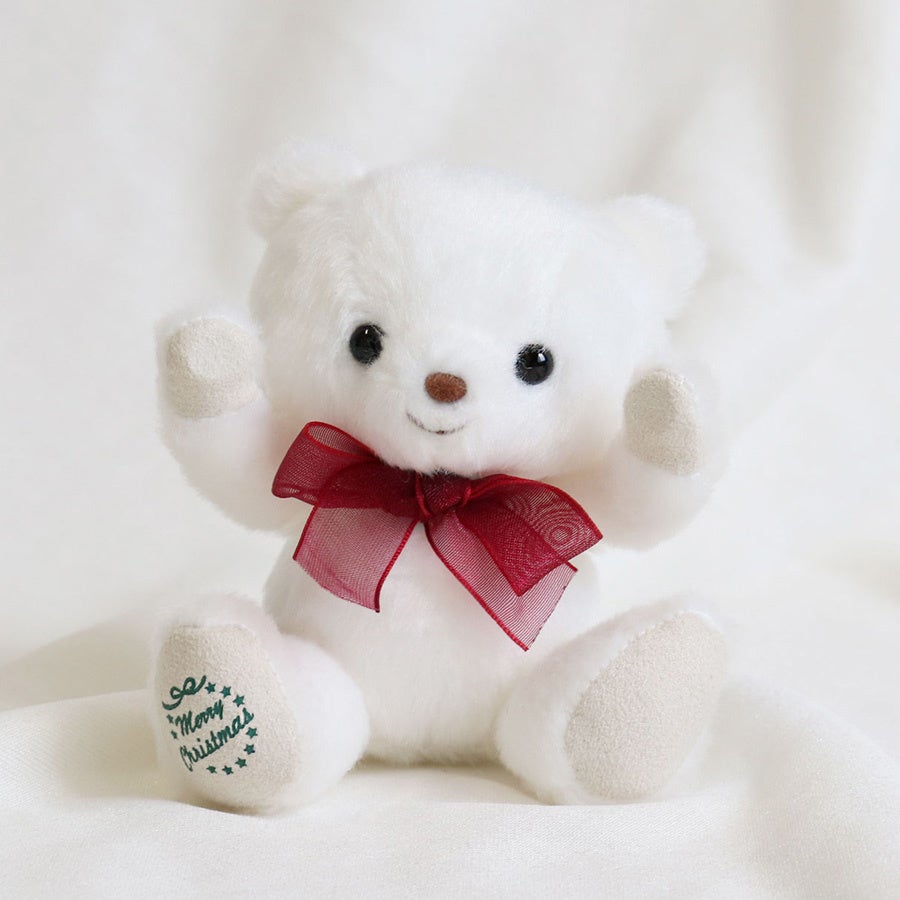 真っ赤なサンタ帽とリボンをまとった、当店人気No.1の12cmテディベア「FUU」。