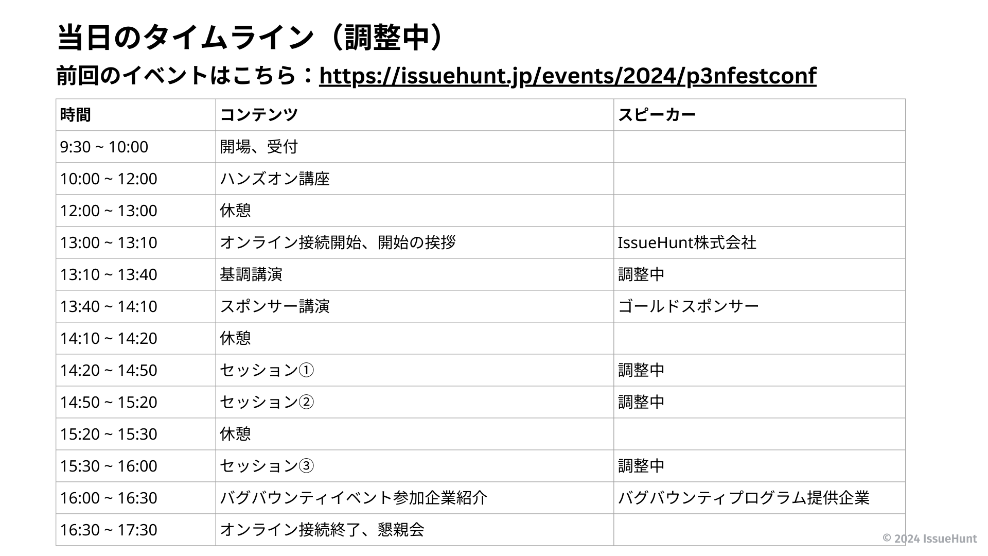 ・イベントページ:https://issuehunt.jp/events/2024/summer/p3nfestbugbounty