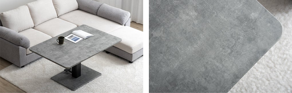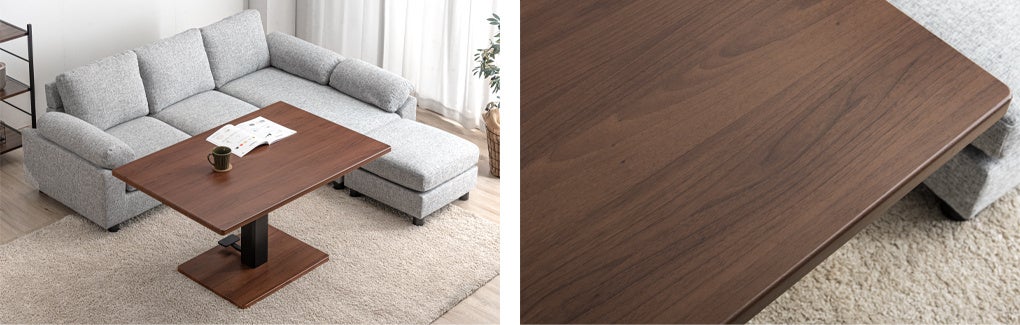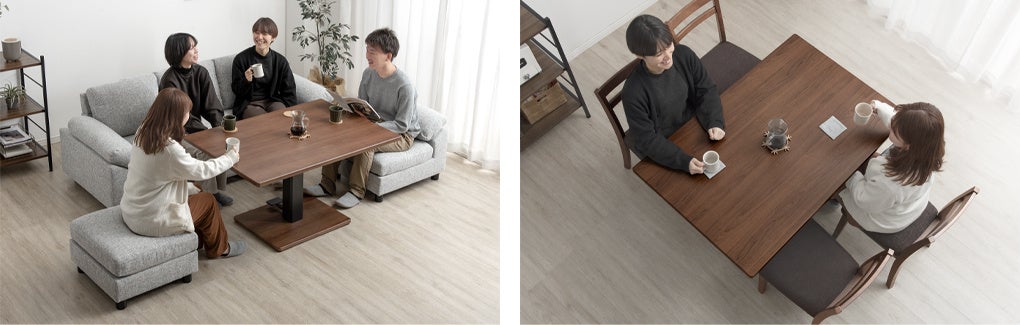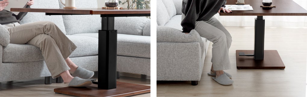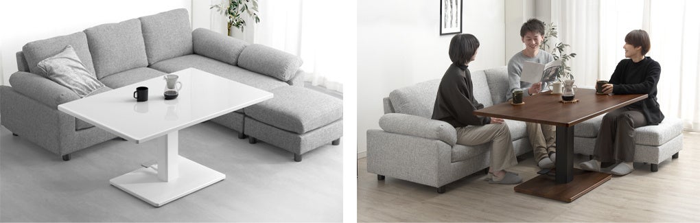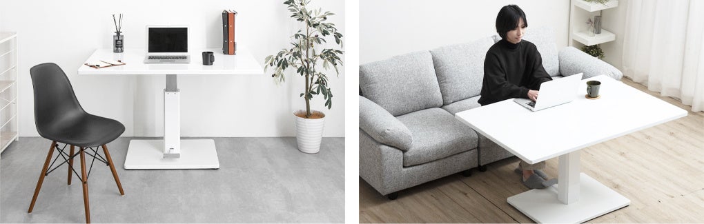 ご自宅のリビングスペースでは、多くの場合ソファに合わせて、センターテーブルを設置することが多く見られます。一般的にソファに合わせるセンターテーブルの天板の高さは、ソファの座面高に対して若干高いものを設置されることが多いです。ただパソコンを使ったデスクワークや食事をするには、天板の高さが合わず、使いづらい経験をされることも多いようです。