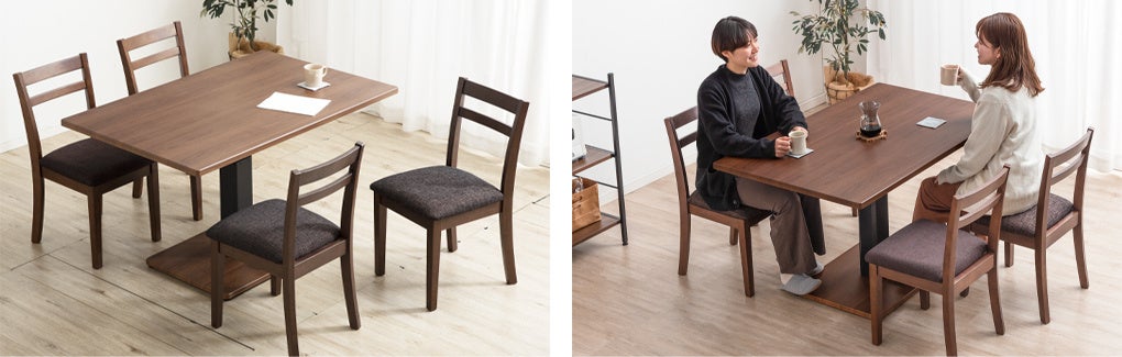 ダイニングチェアなどに合わせる形でテーブルの天板の高さを高めに設定することで、ダイニングテーブルとして家族で囲める食卓を演出します。