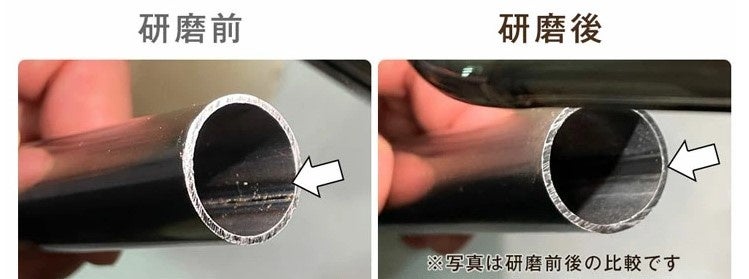支柱内部にあるスチールパイプの内側にバリといわれる凹凸があると、昇降時にスムーズに動かず引っ掛かりのある動きになってしまいます。そこで本製品は内面を研磨することで引っ掛かりのない、スムーズで静かな昇降を実現しました。勿論、パーツ同士の摩耗を防ぐ効果もあるのでより長くご使用いただけます。