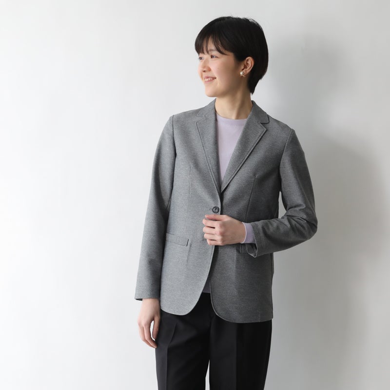 この素材で作るジャケットは、ジャケットというよりもカーディガンのように軽やかでノンストレス。