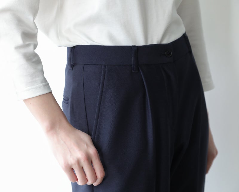 ウエストにはほどよくゆとりを持たせ、くびれすぎず、ルーズにもならない絶妙なラインを実現しました。