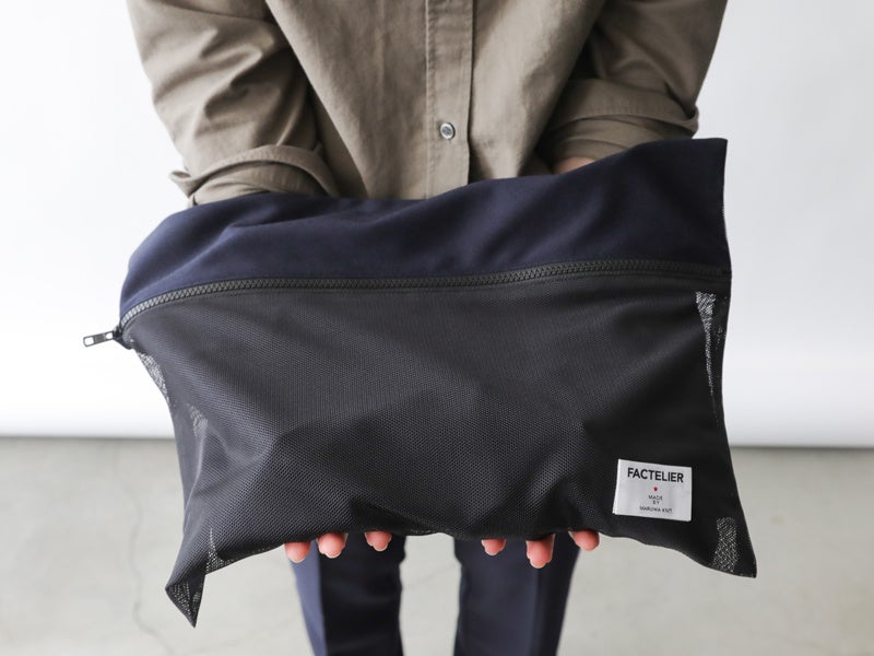 洗濯の際は畳んでこのポーチに入れて洗濯でき、出張や旅行に持っていくときは、ジャケットをしまえるポーチとしても使用できます。