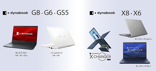 「セルフ交換バッテリー」機構を採用した13.3型プレミアムモバイルノートPC「dynabook X8・X6 CHANGER」、薄型軽量・堅牢性を追求した13.3型プレミアムモバイルノートPC「dynabook G8・G6」、学びや趣味を楽しめる13.3型 スタンダードモバイルノートPC「dynabook GS5」の計5機種9モデルを新たに商品化し、11月15日から順次発売を開始します。