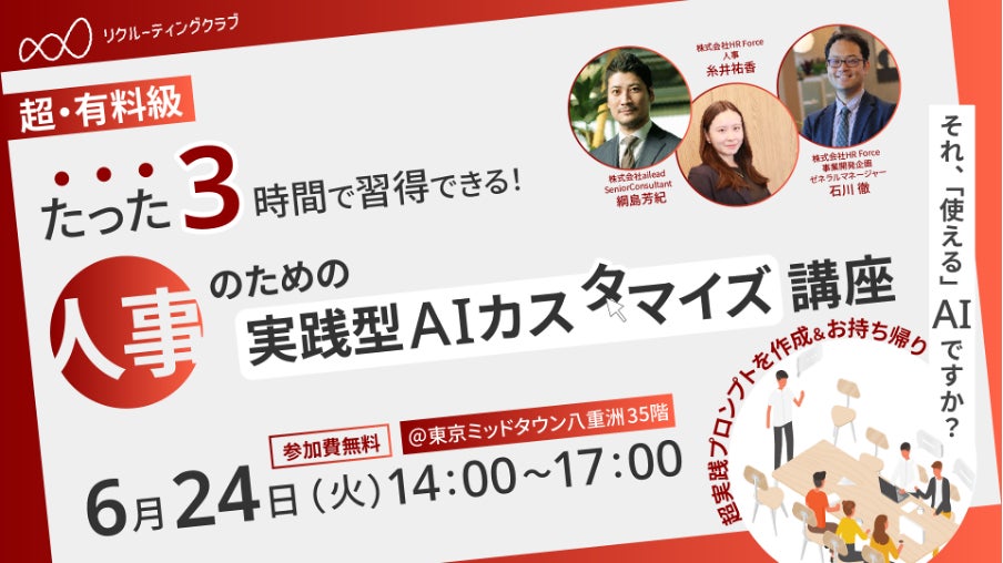 タイトル:「リクルーティングクラブ 6月実践講座」それ、「使える」AIですか?成功企業の人事が実践するAI活用&カスタマイズ術