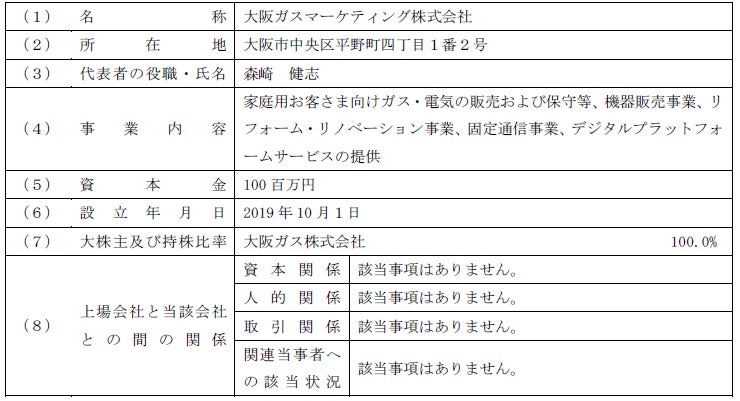 大阪ガスマーケティング株式会社との業務提携に関するお知らせ