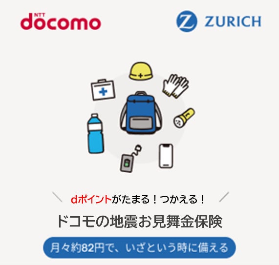 チューリッヒ保険会社とNTTドコモ、d払いアプリから申し込める「ドコモの地震お見舞金保険」の提供を開始