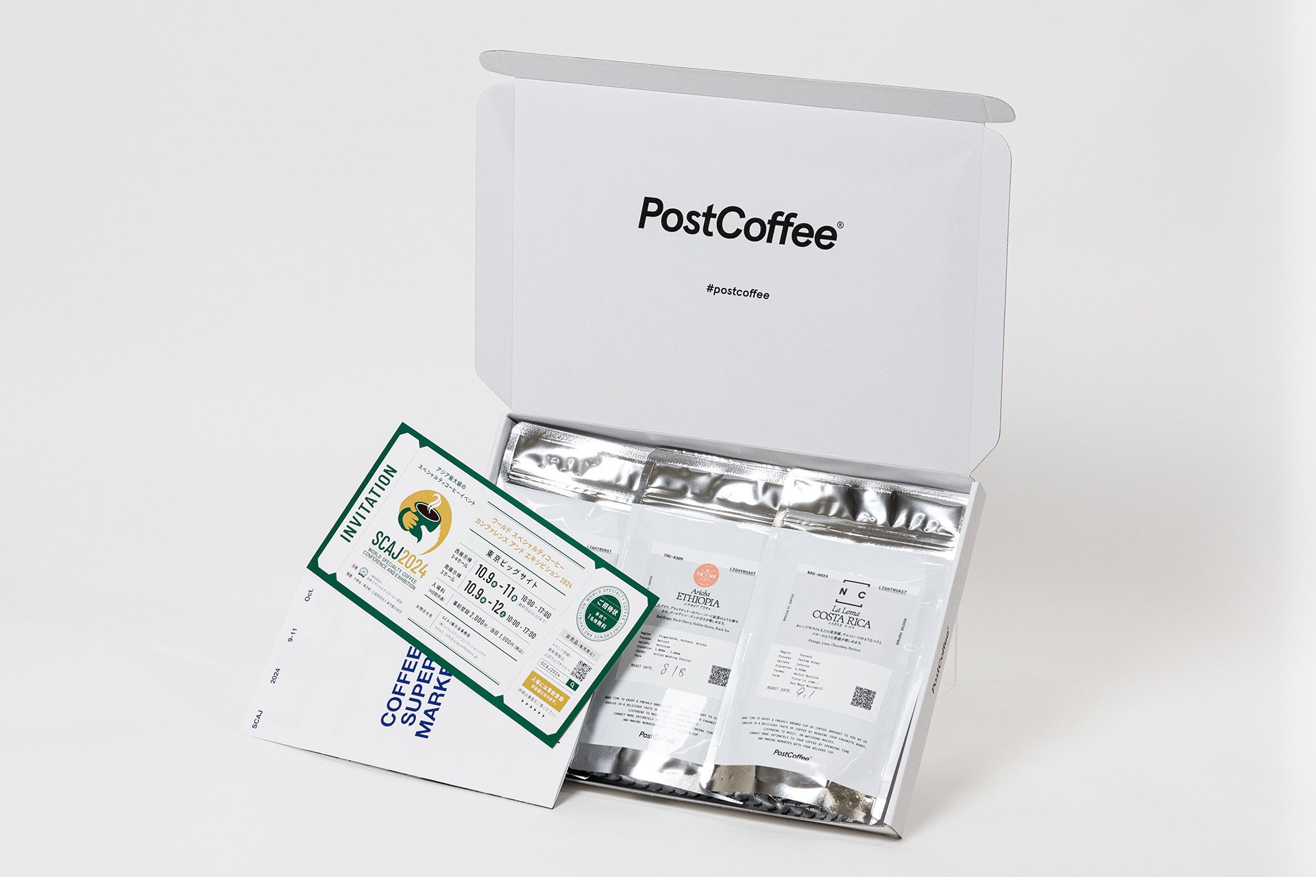 コーヒー専門通販「PostCoffee」では、SCAJ2024のチケットが付いた、コーヒーボックスを販売開始いたしました。 全国のロースターのコーヒーがランダムで45gずつ3種類、9杯分のセットになります。どこのロースターのコーヒーが届くかは開けてからのお楽しみ!是非、SCAJ開催前にご自宅でゲストバリスタ参加ロースターのコーヒーを予習してみてはいかがでしょうか。