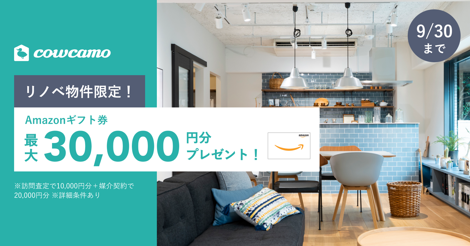 カウカモ、リノベーション済マンションの売却検討者対象、媒介契約締結でAmazonギフト券 最大3万円分プレゼントキャンペーン【9/1スタート】