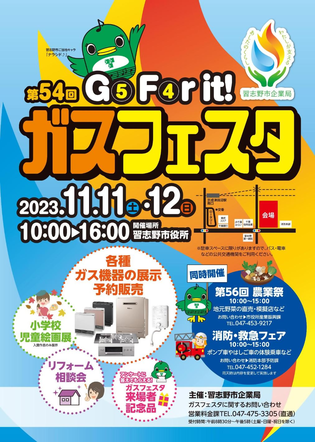 11月11日(土)・12日(日) 各日午前10時〜午後3時(ガスフェスタのみ午後4時まで)