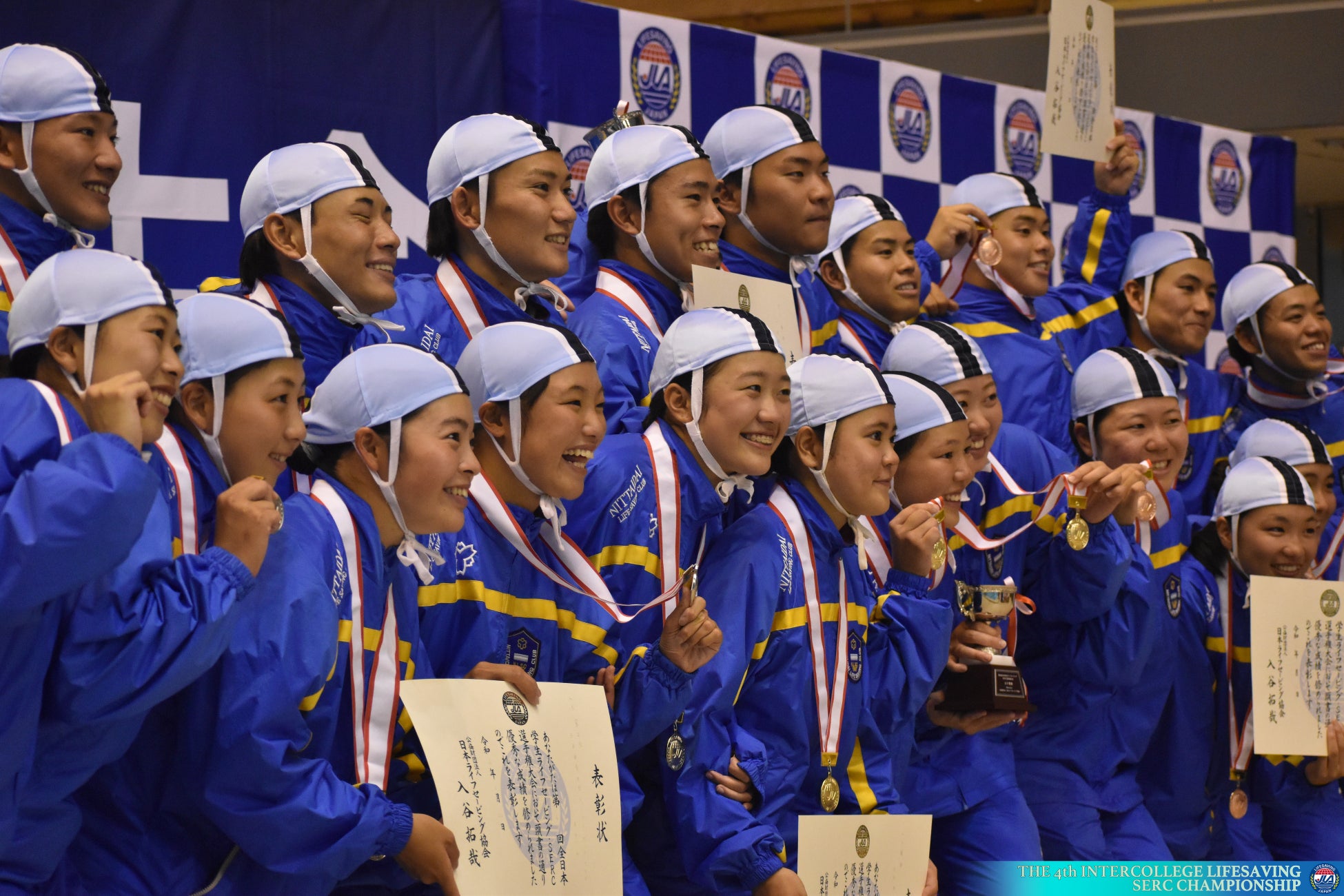 日本体育大学ライフセービング部は第1回大会から参加し、男子チームにおいては第1回大会から全て優勝に輝いています。昨年度の大会は、クラブから複数チームの参加が認められ、男女共に3チームずつ参加しました。結果、高得点での男女3チームともに1位から3位を独占し、王者の強さを表しました。