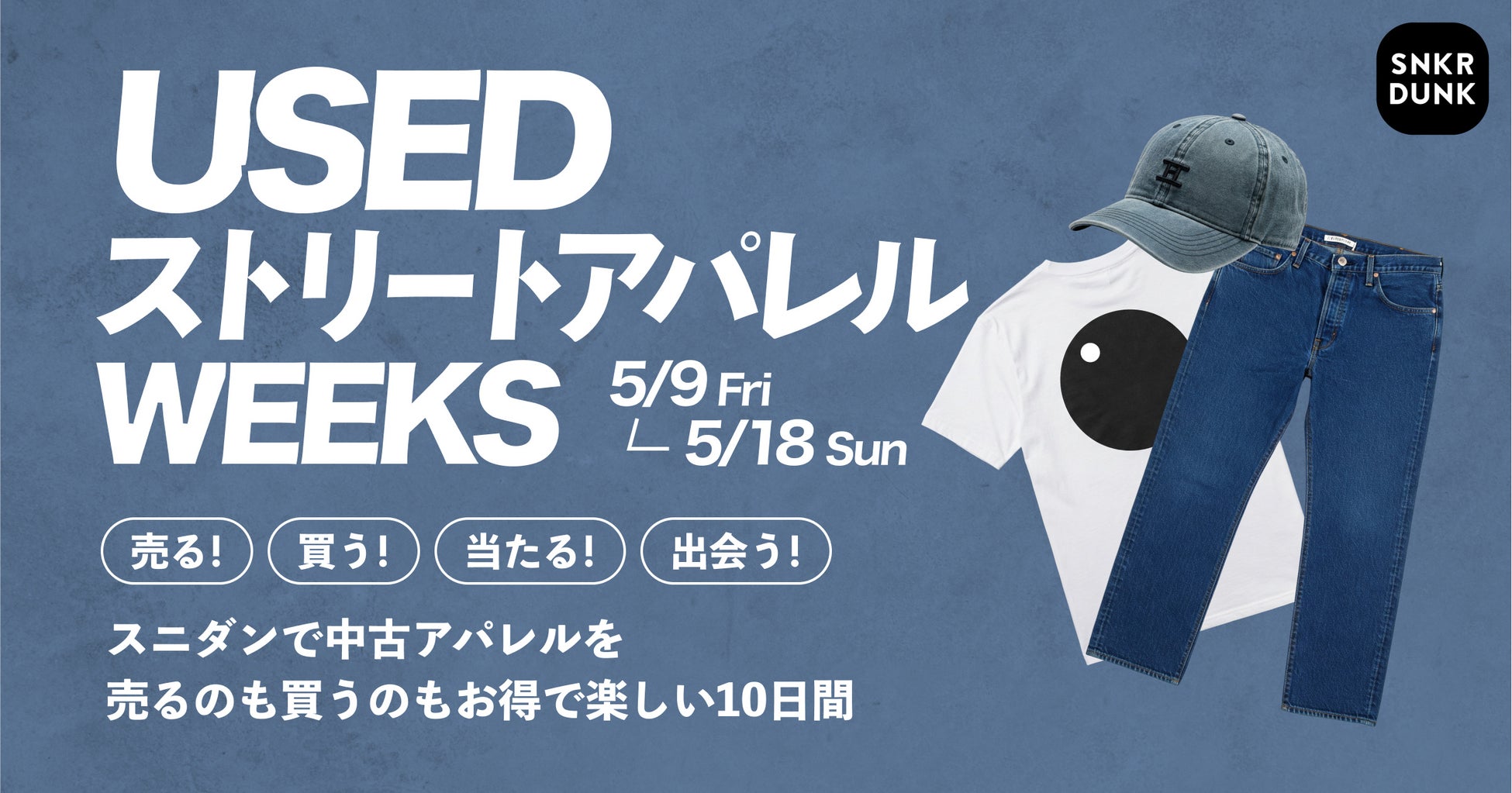 「SNKRDUNK(スニーカーダンク)」(以下、スニダン)を運営する株式会社SODA(本社:東京都渋谷区、代表取締役CEO:内山 雄太、以下SODA)は対象ブランドの中古アパレルを、お得に出品および購入できるキャンペーン「USEDストリートアパレルWEEKS」を、2025年5月9日(金)〜5月18日(日)の期間限定で開催いたします。