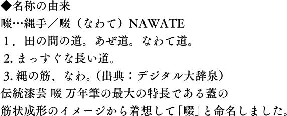 新たなシリーズ、「伝統漆芸 畷」は蓋に特長的な筋状成形を施し、