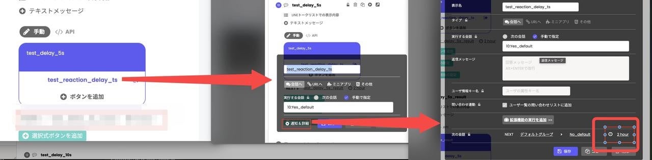 午後10時以降翌朝8時までに予定されている配信は、すべて8:00以降に配信が繰り延べられる仕様でした。また「n時間後」の場合も同様に配信時間を計算します。