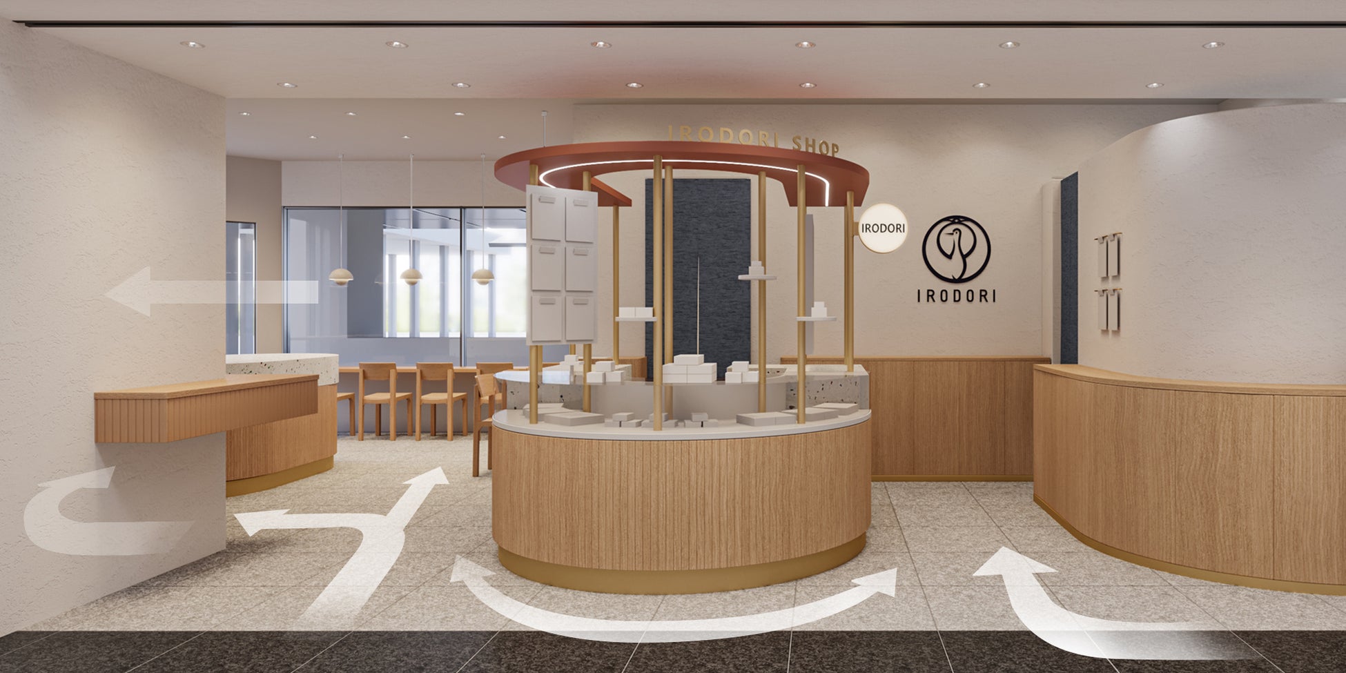 IRODORI店舗の半分を占める物販スペースを全面改装。リニューアル後の東京店に設置されたものと同様、かわいいショップインショップ「IRODORI SHOP(イロドリショップ)」が登場いたします。
