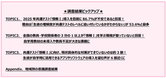 Topic1. 2025年共通テスト「情報Ⅰ」導入を目前に86.7%が不安であると回答!