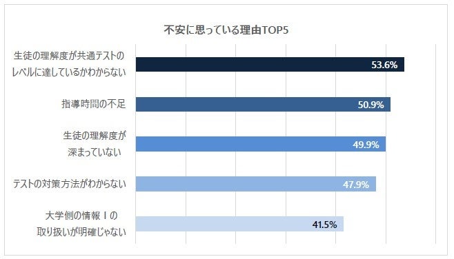 理由は「生徒の理解度が共通テストのレベルに追い付いているかがわからない」が53.6%と最多