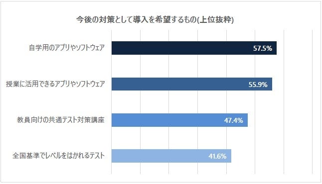 生徒が自学時に活用できるアプリやソフトウェアの導入を望む声が6割近くに
