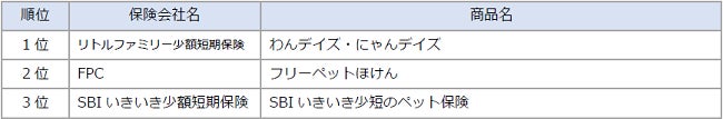 ■リトルファミリー少額短期保険の「わんデイズ・にゃんデイズ」が1位にランクイン
