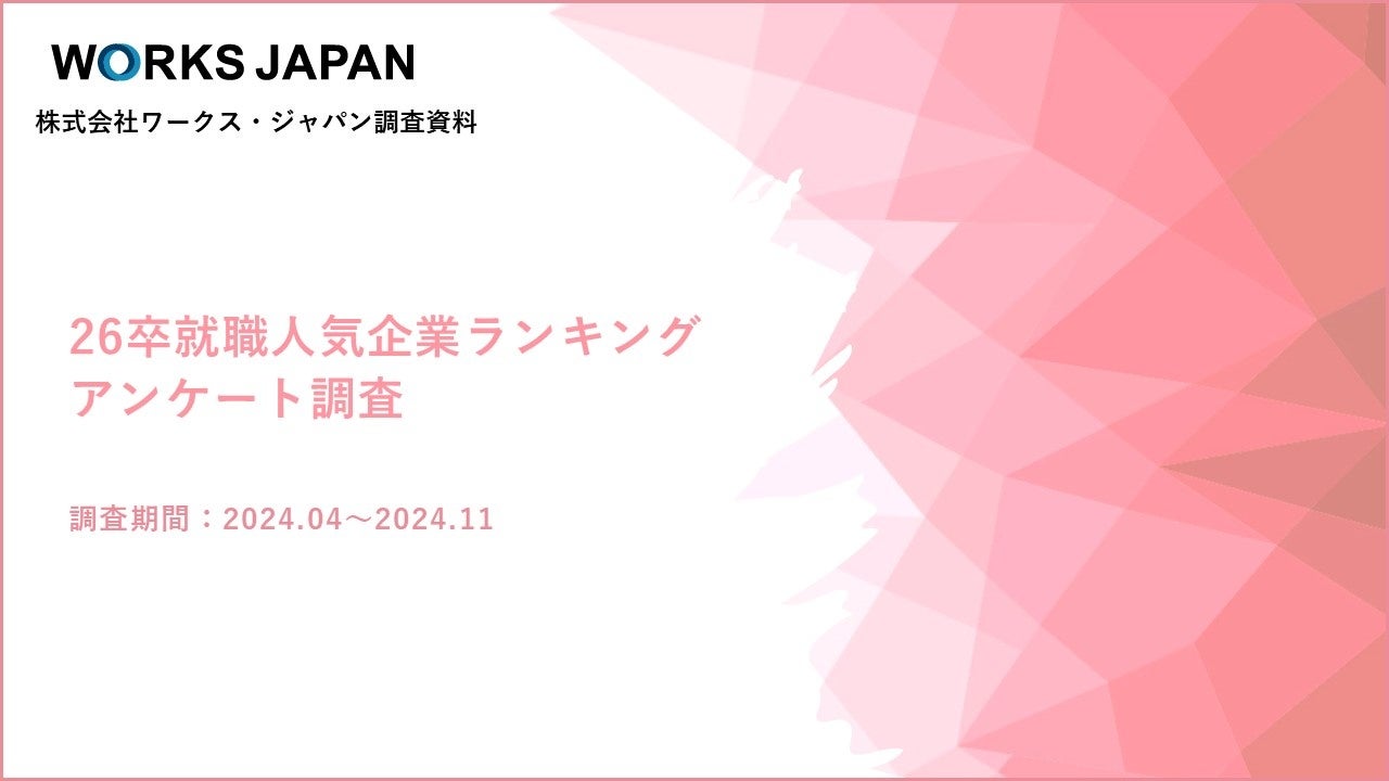 産経新聞社と人事コンサルティングのワークス・ジャパンは、2026年3月卒業・修了予定の大学生、大学院生を対象に、2024年4月8日~11月30日を調査期間として、就職希望先調査にあわせて、企業選びについてのアンケート調査を実施しました。