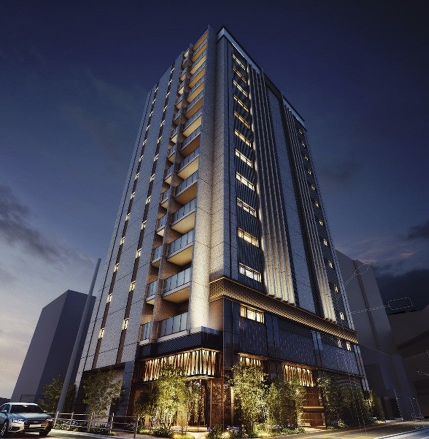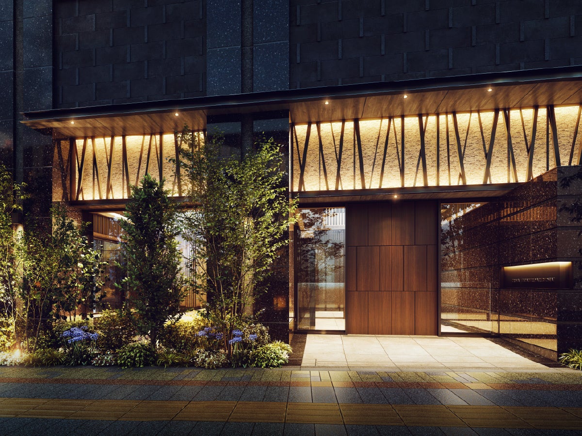 本物件は、板橋の歴史と自然を取り入れ、重厚感と落ち着きが調和するデザインを採用。「街角をつくる穏やかな灯り」をコンセプトに、ライティングにもこだわりました。住まいとしての安らぎや穏やかな夜の景色を演出します。
