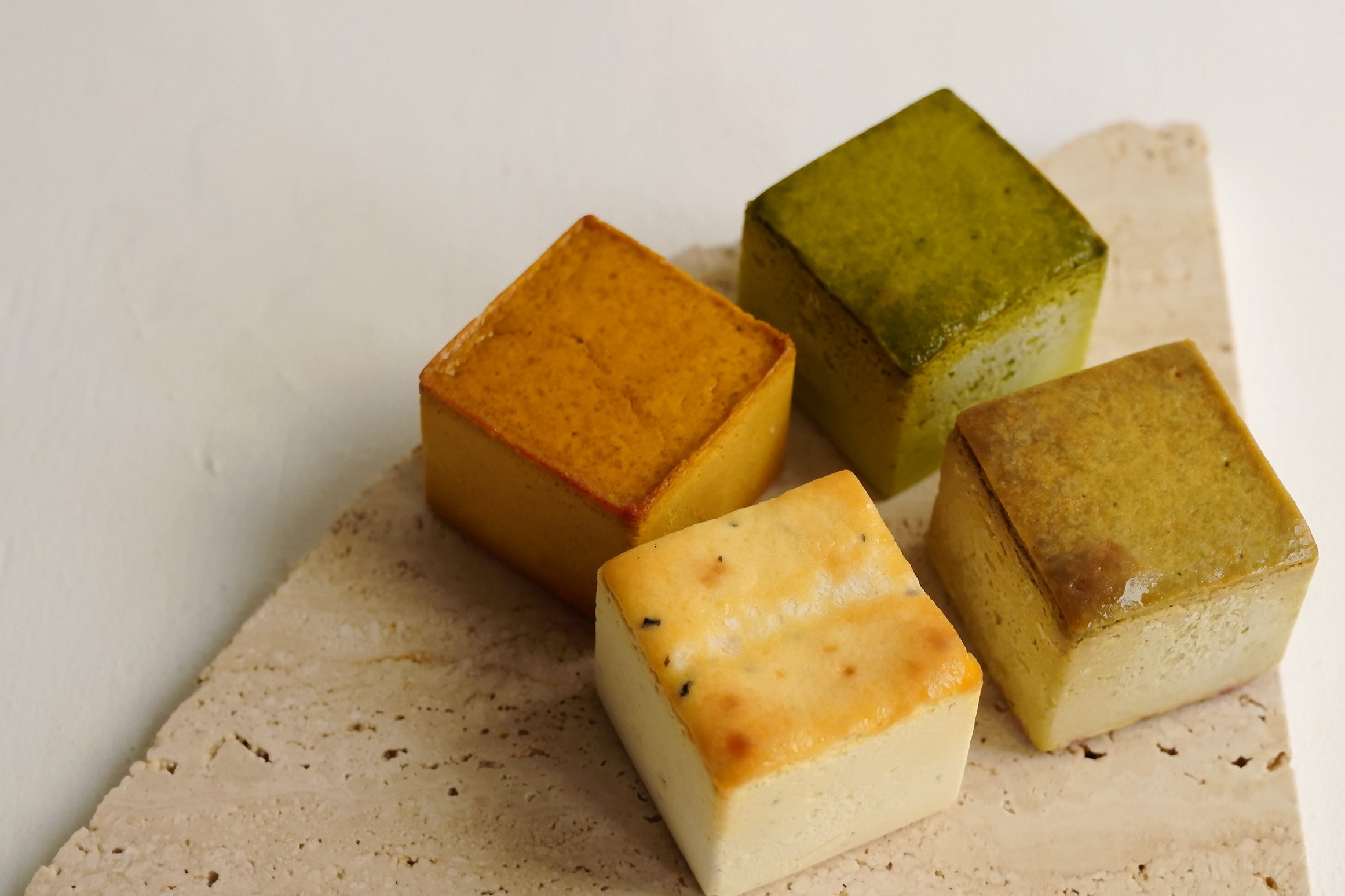 抹茶の香りが引き立つ「Mr. CHEESECAKE Oribe」と、濃厚なピスタチオが主役の「Mr. CHEESECAKE pistachio raspberry」、カボチャと焦がしバターを組み合わせた「Mr. CHEESECAKE Pumpkin Butterscotch」、ヒラミレモン(シークヮーサー)の涼やかな酸味とほのかな苦味を楽しむ「Mr. CHEESECAKE hirami lemon」のアソートセット。食べ比べや大切な人とのシェアにぴったりなキューブ型のケーキ4種をオリジナルのBoxに詰めてお届けします。