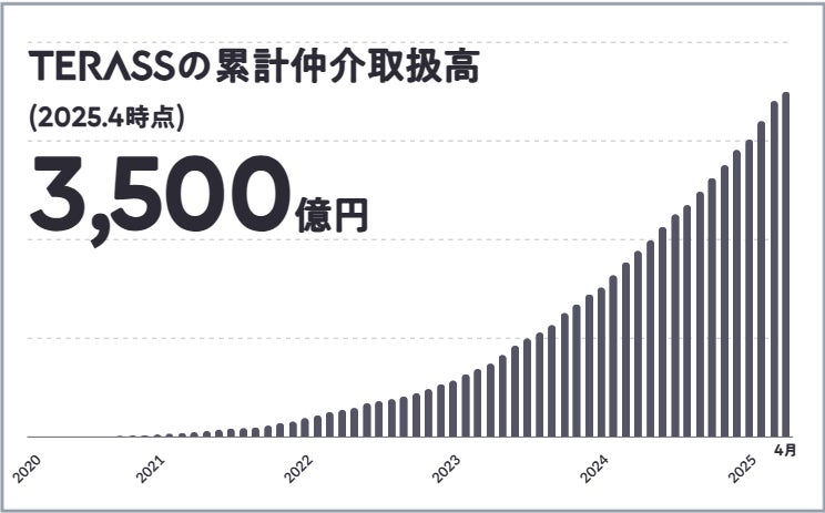 TERASSは、優秀な不動産エージェントとテクノロジーによる不動産売買の新たな顧客体験の創出により、2025年4月時点で、2019年4月の創業以来の累積取扱高は3,500億円、選考通過率 約5%の厳しい審査を経てTERASSに参画する不動産エージェントは700名超と拡大しており、今後、国内最大級となる不動産エージェント2,000名体制を目指します。