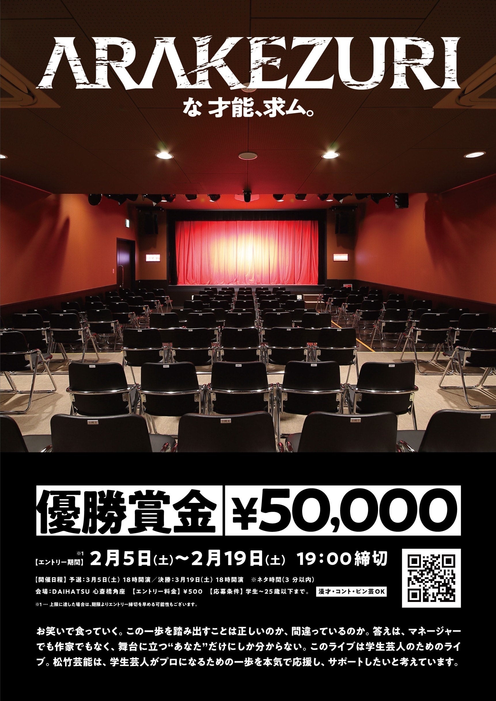 優勝賞金5万円をかけた学生イベント<ARAKEZURI>3月開催決定!!