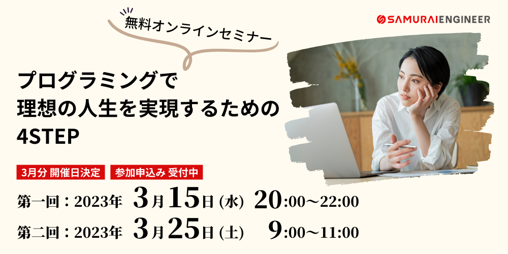 【3月分 開催日決定】無料オンラインセミナー『プログラミングで理想の人生を実現するための4STEP』参加申込み受付開始
