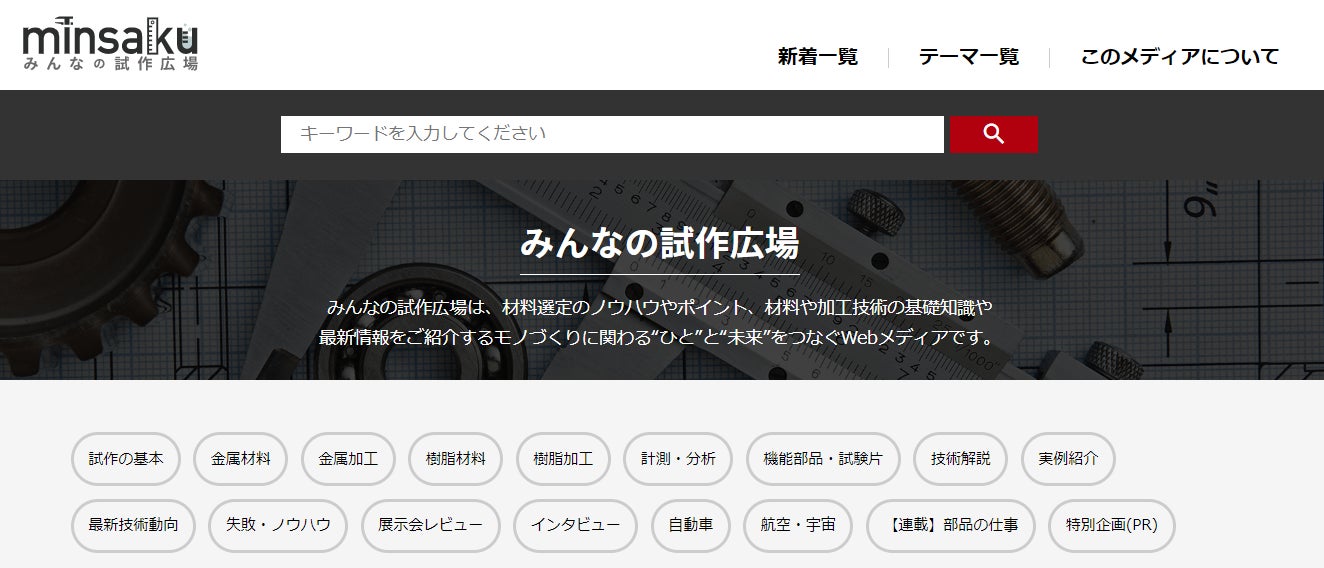 日立ハイテクでは、研究開発現場における試作に必要な基礎知識や技術動向に関する情報を材料メーカーや、加工・計測事業者への取材に基づいて記事化し、同社が運営するWebメディア「みんさく」にて公開しています。「みんさく」は、研究者や設計開発者向けに試作開発のヒントになるアイデア・技術・製品などをわかりやすくまとめ、研究開発現場での試作をサポートする情報提供ツールです。