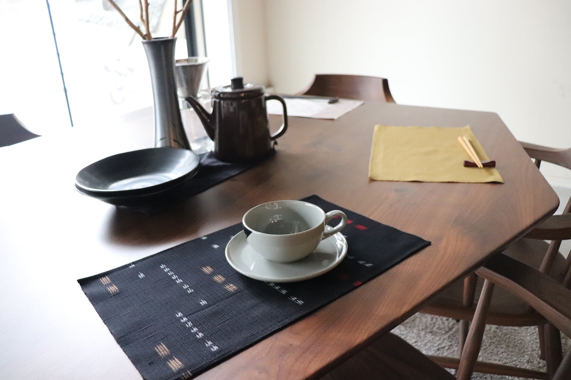 質感を活かしたテーブルが人気のニッポネアと、地域独自の生地を活かした現代風MONPEを作るうなぎの寝床、それぞれの「らしさ」活かしたアイテムが今回のプレースマット(ランチョンマット)です。気に入ったテーブルを、綺麗な状態で長く保ちたいという声はよく聞きます。しかし、ビニールマットではせっかくのテーブルの質感が台無しになってしまう。そこで、プレースマットをご用意したらいいのでは?という着想を起点にスタートしたプロジェクトです。また、せっかく作るのならストーリーがあるプロダクトにしたい、そう考えて今回、うなぎの寝床さんにお声がけさせていただきました。