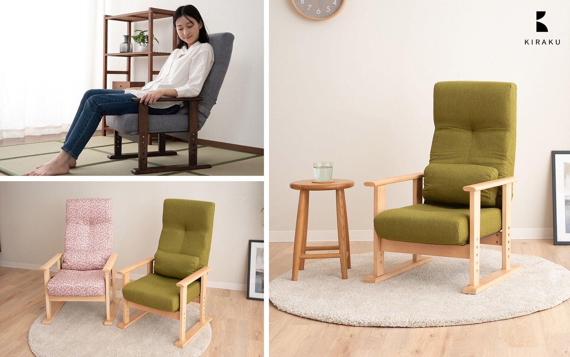 人気のエントリーモデル『レバー式リクライニング高座椅子 きらく』がリニューアル!さらに使いやすくなりました!