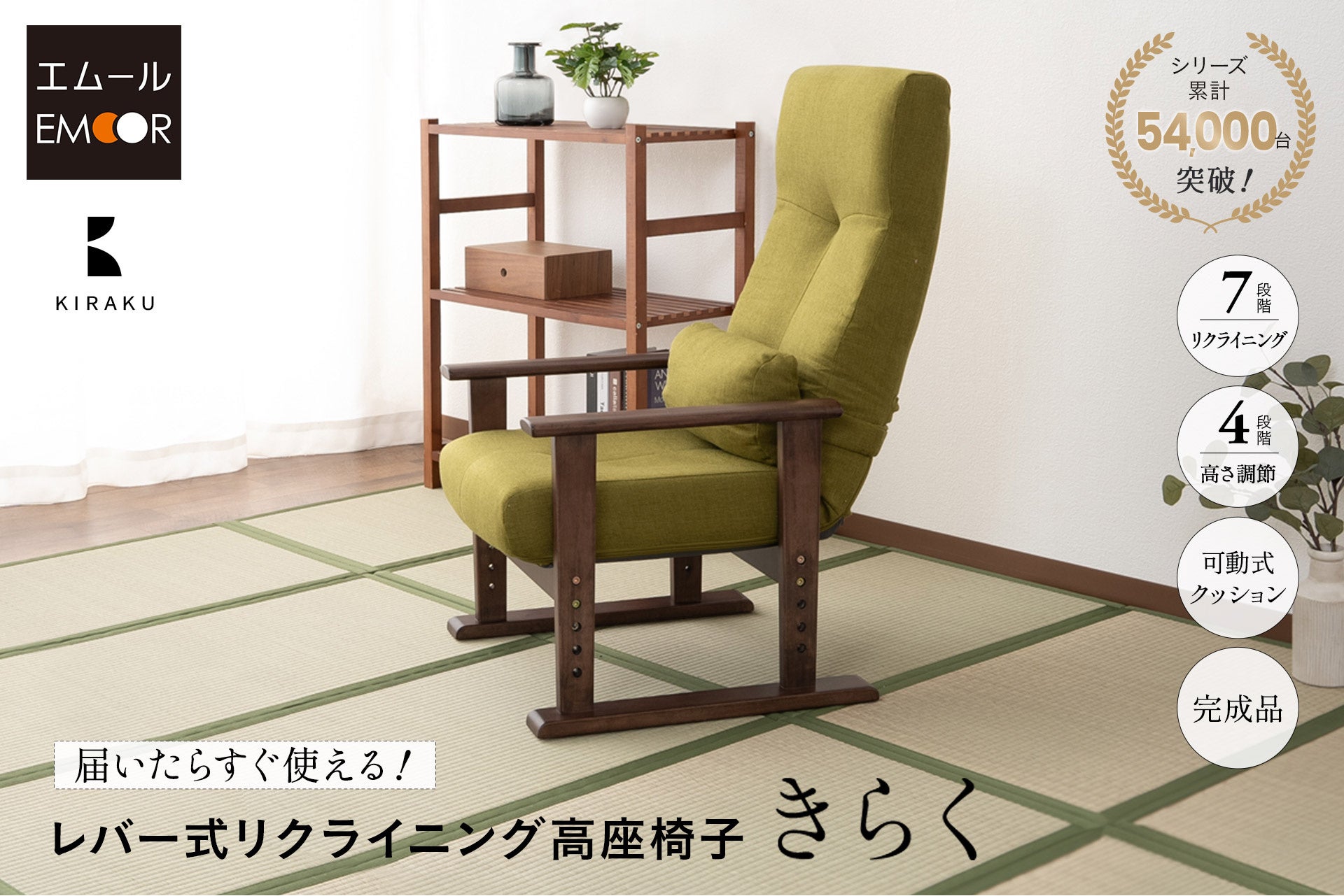 健康家具ブランドEMOOR(エムール)は、『レバー式リクライニング高座椅子 きらく』を従来の使いやすさを維持しつつ、幅広い年齢層にフィットするようリニューアルしました。