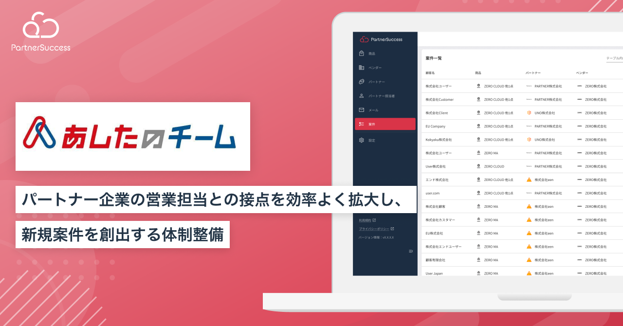 【パートナーサクセス導入事例】株式会社あしたのチーム、代理店連携管理クラウド「PartnerSuccess」導入