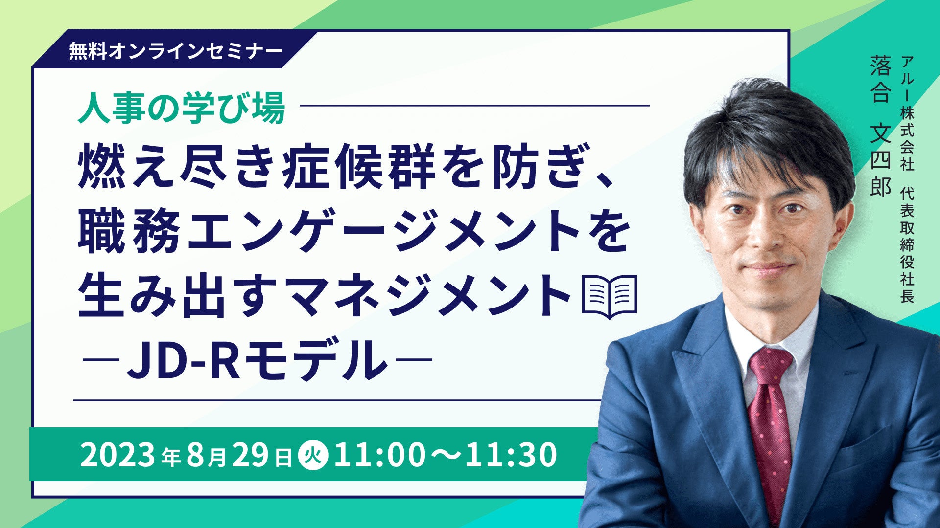 人事担当者向け無料オンラインセミナー「燃え尽き症候群を防ぎ、職務エンゲージメントを生み出すマネジメント~JD-Rモデル~」開催のお知らせ