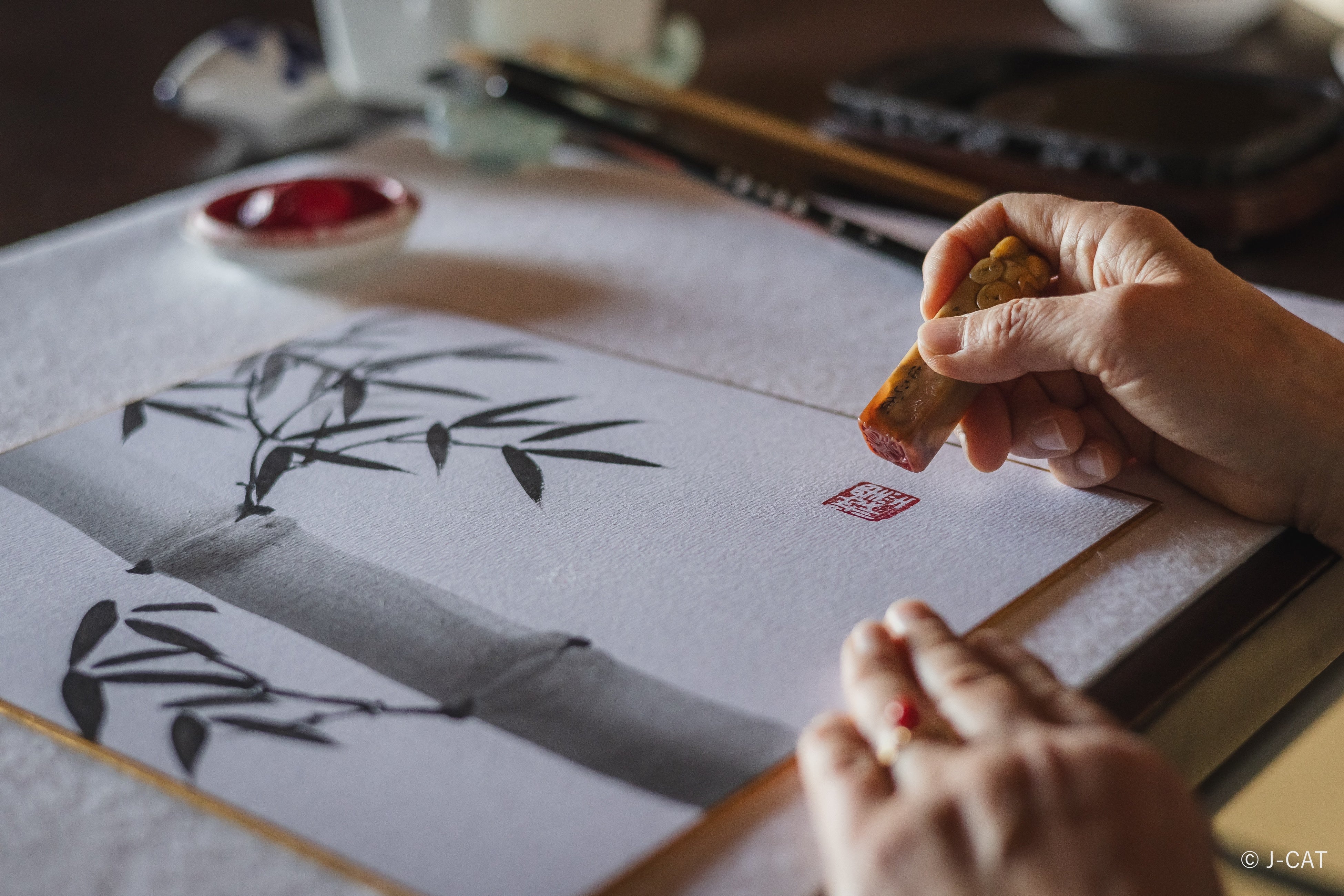 自ら墨を磨り、季節の草花を色紙に描き出すプロセスは、まさに自分自身と深く向き合う瞑想のような静かな時間。墨の濃淡が織りなす表現世界を通じて、感性を研ぎ澄ます体験をお愉しみいただけます。