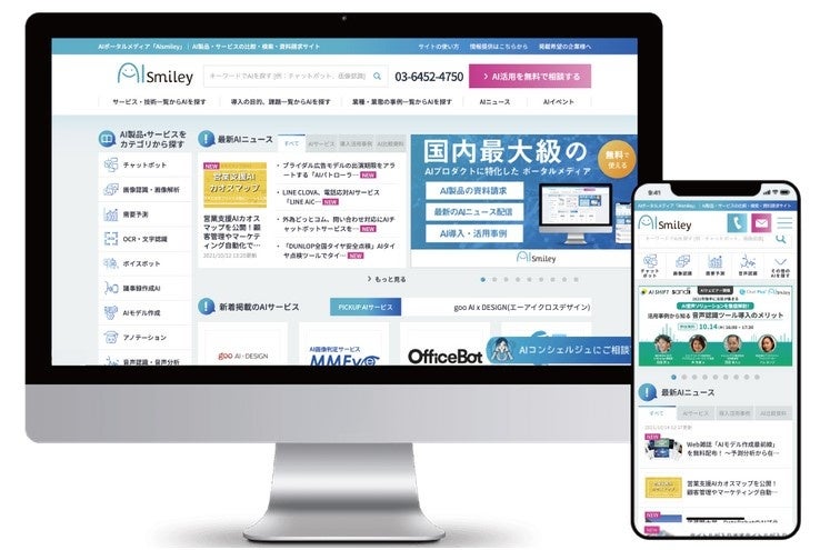 AIsmileyは人工知能を搭載したサービスの資料が請求できるAIポータルメディアです。Webサイト上で気になる技術や業種・業態の事例からAIプロダクトを選び、まとめて無料で資料請求できます。