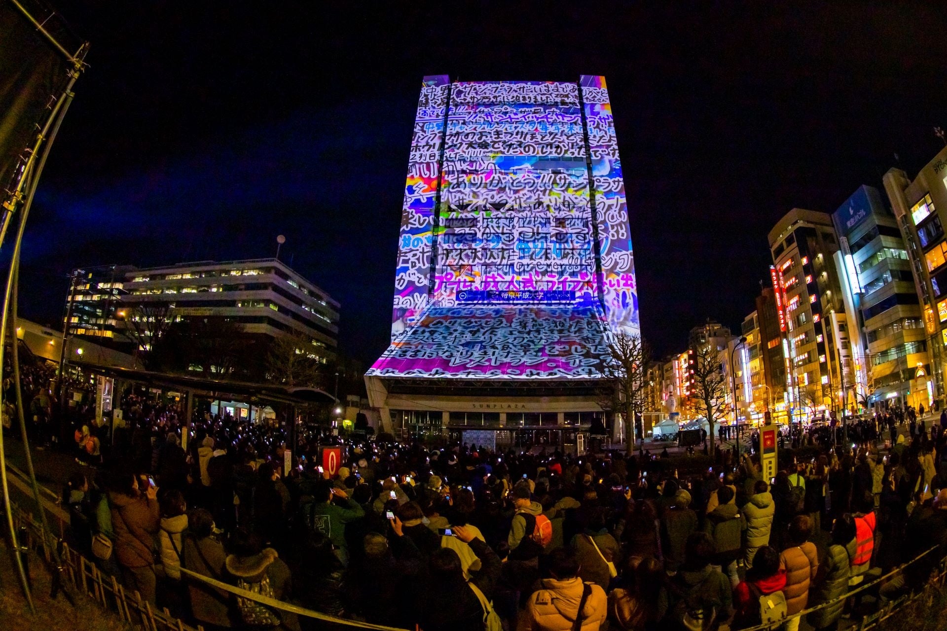 開業50年余りの歴史に幕を閉じた中野サンプラザの最後を飾る、区民参加型のプロジェクションマッピングです。